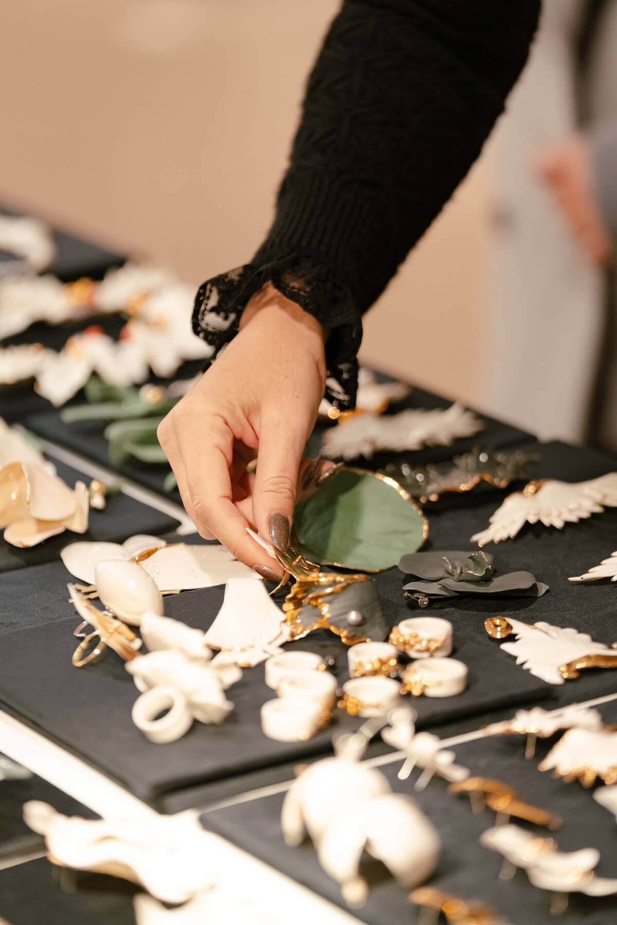 Atmosfera primitoare încurajează vizitatorii să descopere piese rare și să interacționeze direct cu talentul creatorilor.